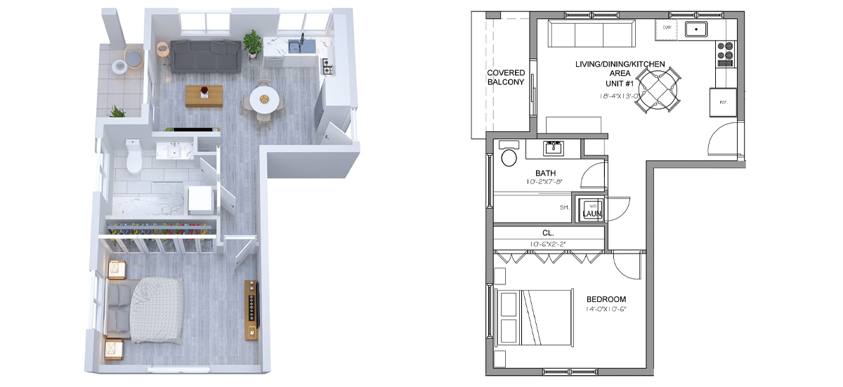 1 Bedroom | 1 Bathroom | 614 SqFt Including Covered Balcony