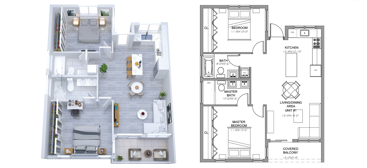 2 Bedroom | 2 Bathroom | 905 SqFt Including Covered Balcony